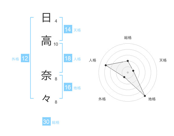 日高 奈々さんの総格は30画の2点!