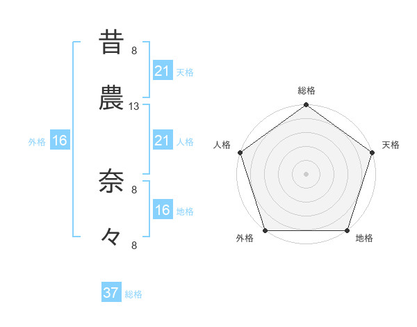 昔農 奈々さんの天格は21画の5点!