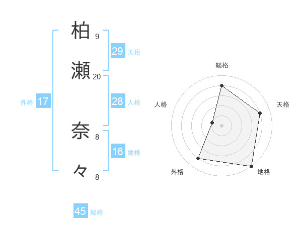 柏瀬 奈々さんの総格は45画の4点!