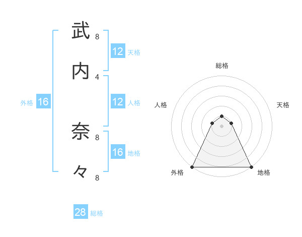 武内 奈々さんの外格は16画の5点!