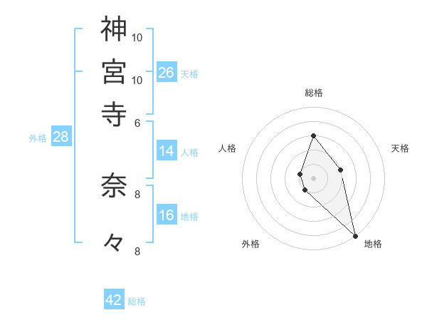 神宮寺 奈々さんの総格は42画の3点!