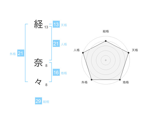 経 奈々さんの天格は13画の5点!