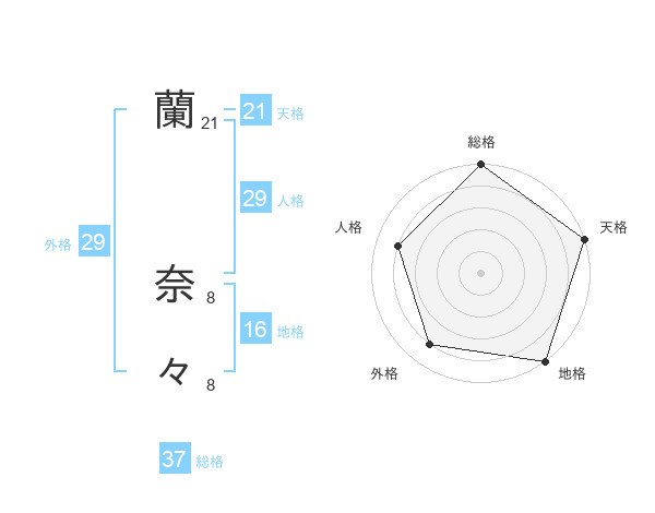 蘭 奈々さんの天格は21画の5点!