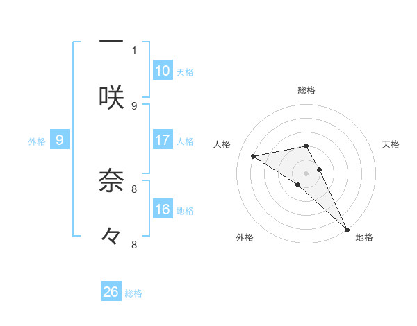 一咲 奈々さんを姓名の画数から五運を鑑定