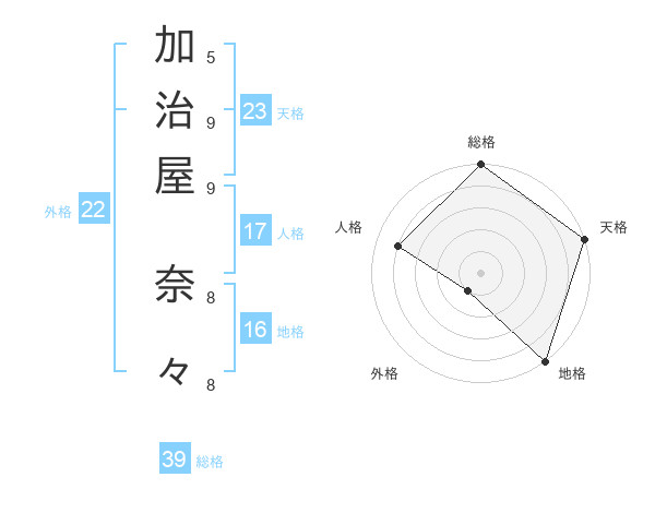 加治屋 奈々さんを姓名の画数から五運を鑑定