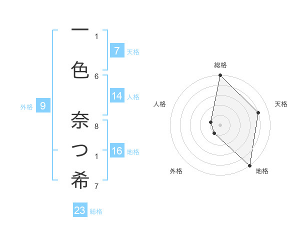 一色 奈つ希さんを姓名の画数から五運を鑑定