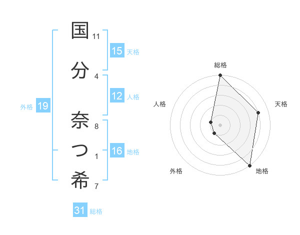 国分 奈つ希さんの総格は31画の5点