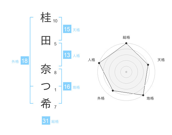 桂田 奈つ希さんを姓名の画数から五運を鑑定