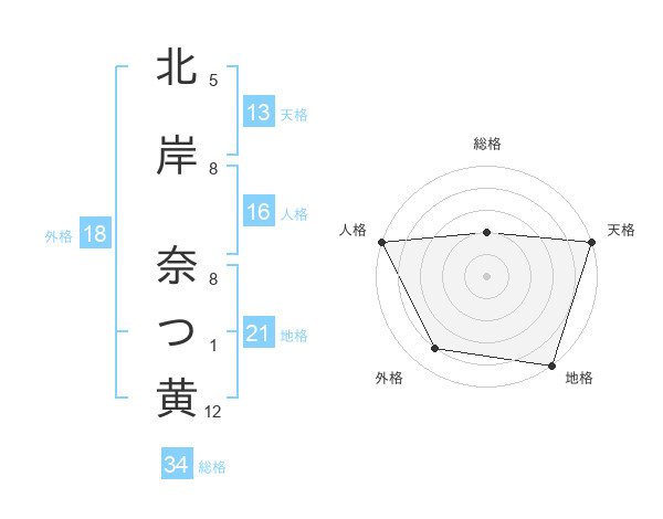 北岸 奈つ黄さんを姓名の画数から五運を鑑定