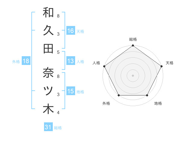 和久田 奈ツ木さんを姓名の画数から五運を鑑定