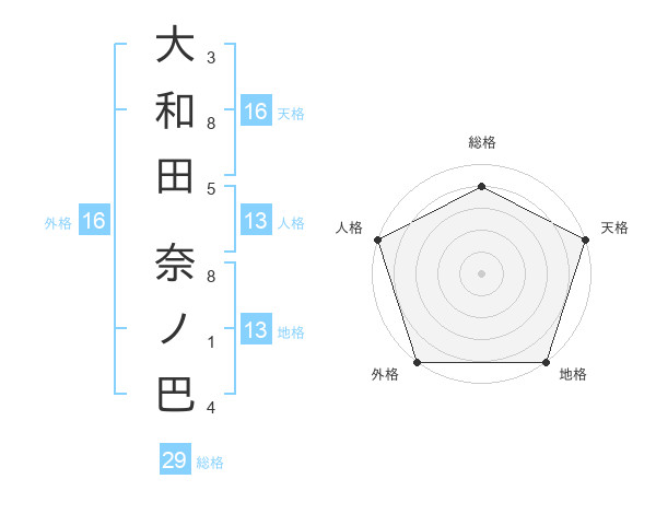 大和田 奈ノ巴さんを姓名の画数から五運を鑑定