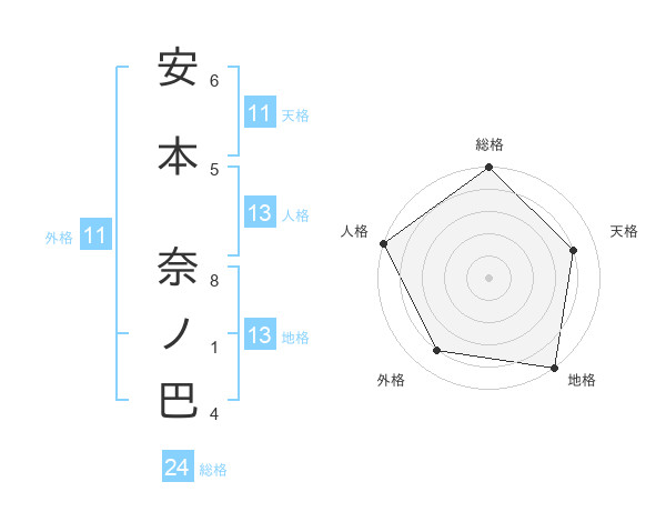 安本 奈ノ巴さんを姓名の画数から五運を鑑定