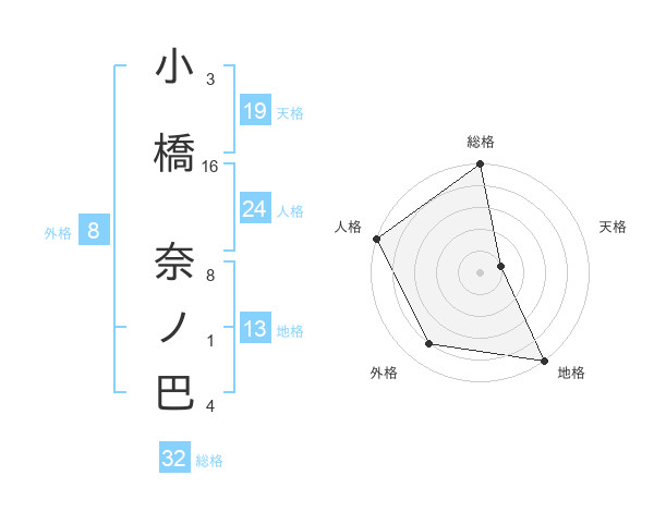 小橋 奈ノ巴さんの外格は8画の4点!