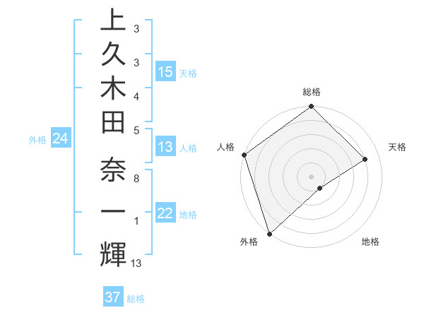 上久木田 奈一輝さんを姓名の画数から五運を鑑定