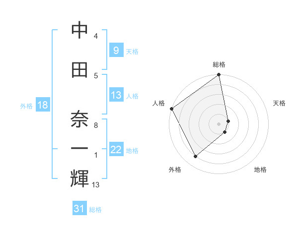 中田 奈一輝さんを姓名の画数から五運を鑑定