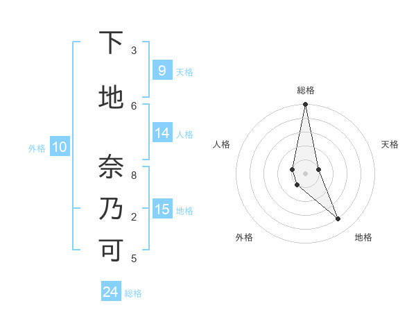 下地 奈乃可さんの総格は24画の5点!