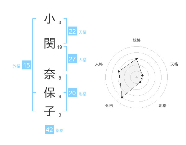 小関 奈保子さんを姓名の画数から五運を鑑定