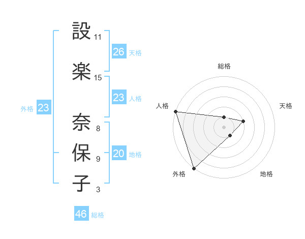 設楽 奈保子さんを姓名の画数から五運を鑑定