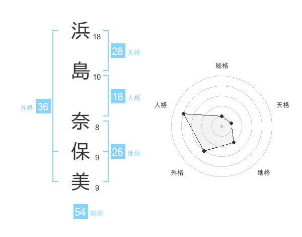 浜島 奈保美さんを姓名の画数から五運を鑑定