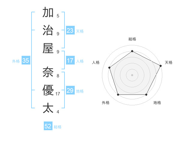 加治屋 奈優太さんを姓名の画数から五運を鑑定