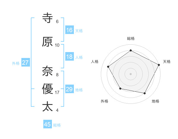 寺原 奈優太さんを姓名の画数から五運を鑑定