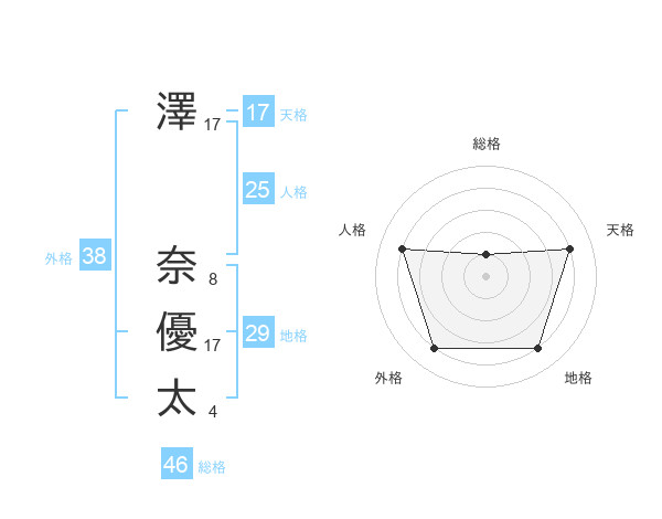 澤 奈優太さんの天格は17画の4点!