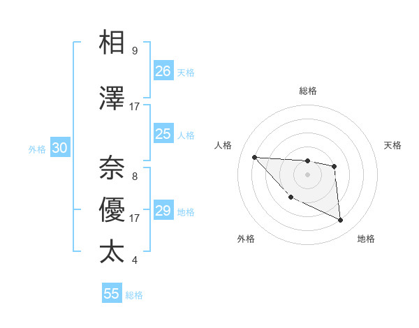 相澤 奈優太さんを姓名の画数から五運を鑑定