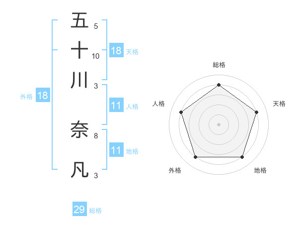 五十川 奈凡さんを姓名の画数から五運を鑑定