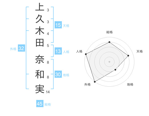 上久木田 奈和実さんを姓名の画数から五運を鑑定