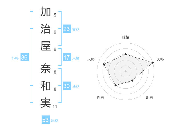 加治屋 奈和実さんを姓名の画数から五運を鑑定