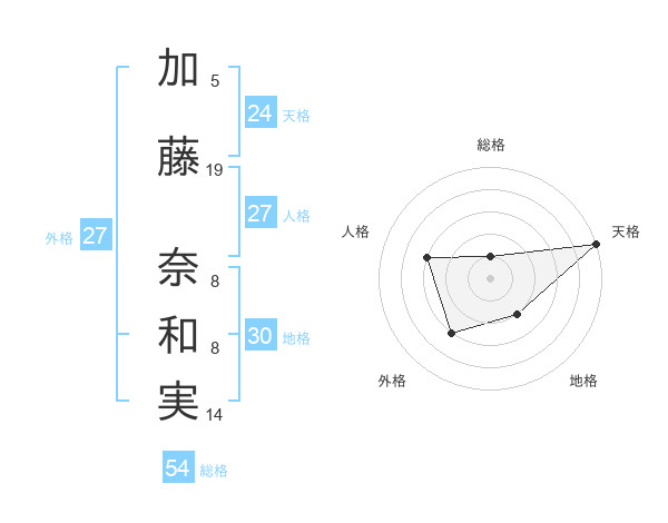 加藤 奈和実さんを姓名の画数から五運を鑑定