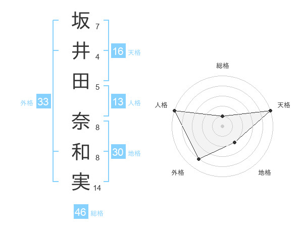 坂井田 奈和実さんを姓名の画数から五運を鑑定