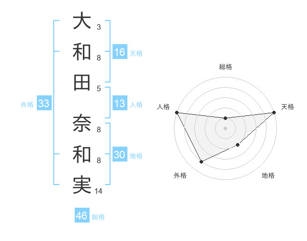 大和田 奈和実さんを姓名の画数から五運を鑑定