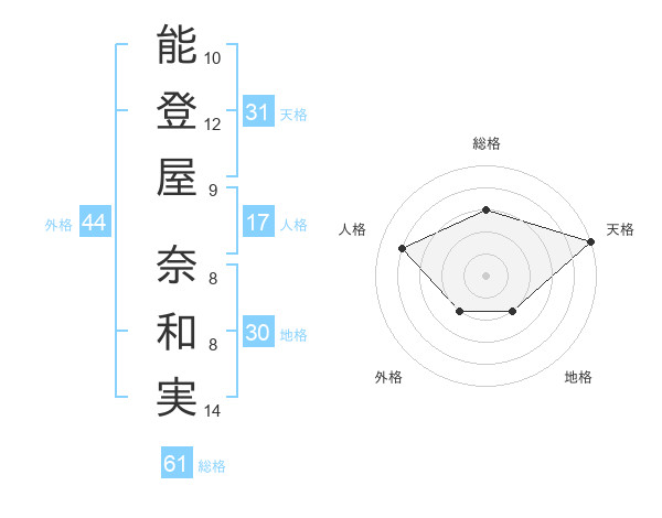 能登屋 奈和実さんを姓名の画数から五運を鑑定