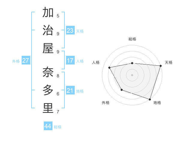 加治屋 奈多里さんを姓名の画数から五運を鑑定