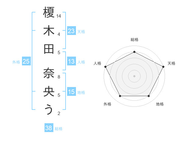 榎木田 奈央うさんの天格は23画の5点!
