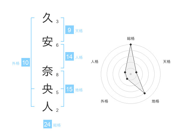 久安 奈央人さんを姓名の画数から五運を鑑定