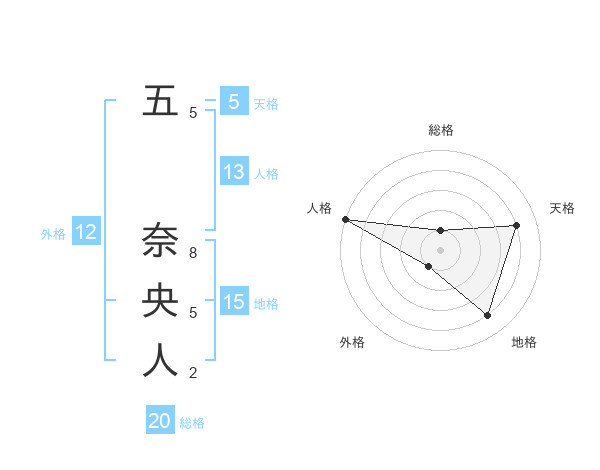 五 奈央人さんの総格は20画の1点!