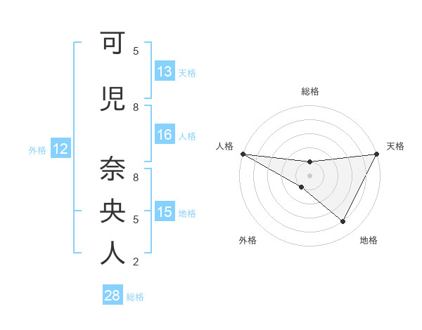 可児 奈央人さんを姓名の画数から五運を鑑定