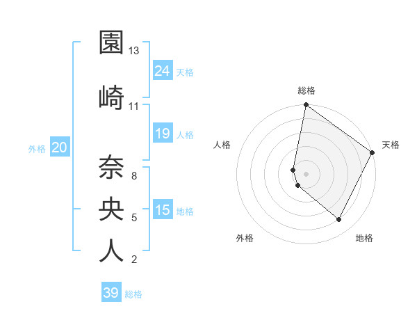 園崎 奈央人さんを姓名の画数から五運を鑑定