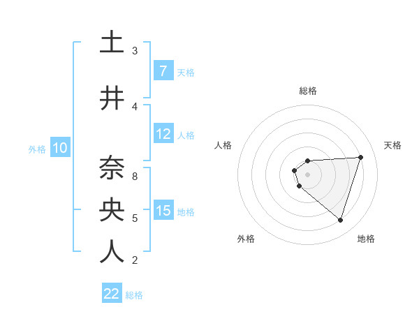 土井 奈央人さんを姓名の画数から五運を鑑定