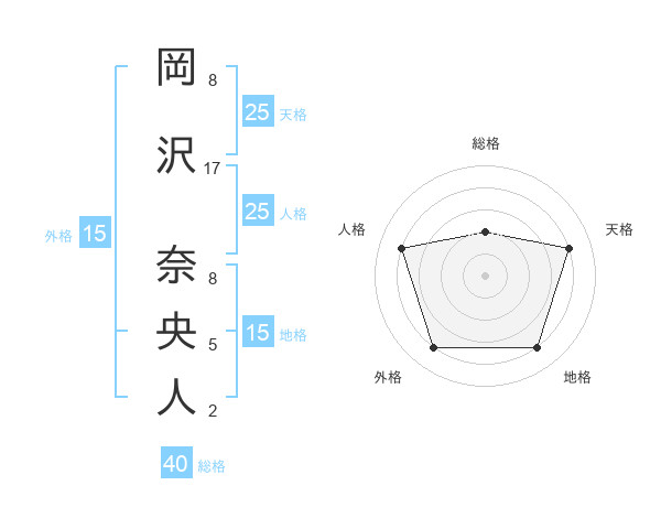岡沢 奈央人さんの外格は15画の4点!