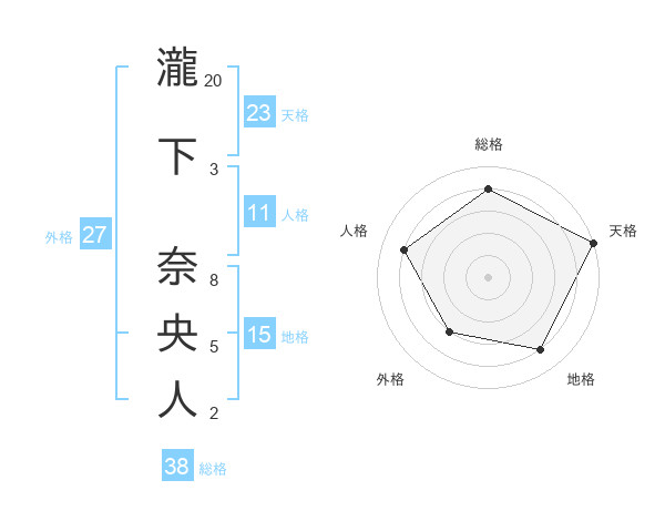 瀧下 奈央人さんを姓名の画数から五運を鑑定