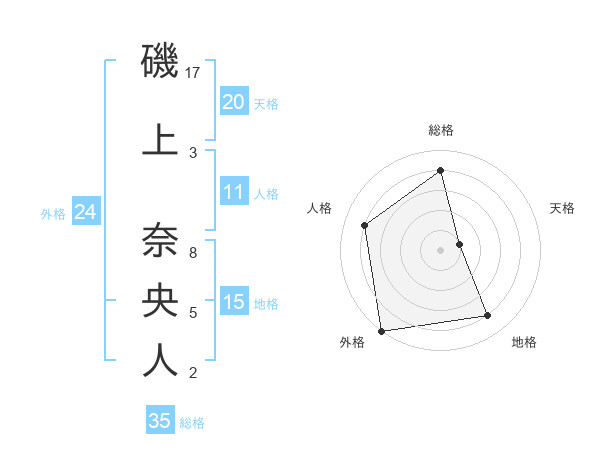 磯上 奈央人さんを姓名の画数から五運を鑑定