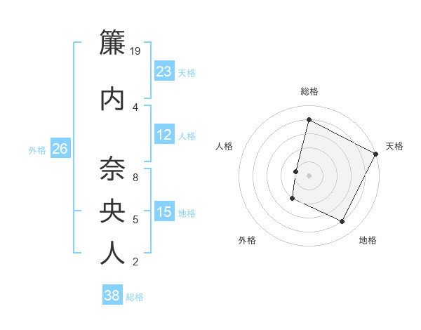 簾内 奈央人さんを姓名の画数から五運を鑑定