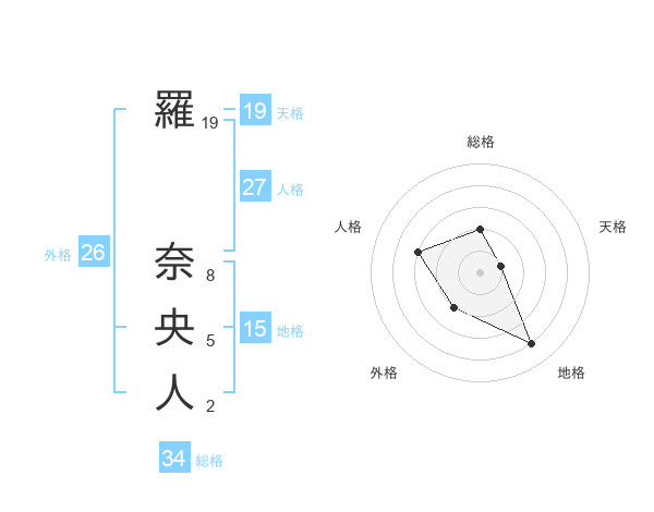 羅 奈央人さんの総格は34画の2点!
