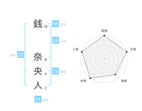 銭 奈央人さんの総格は31画の5点!