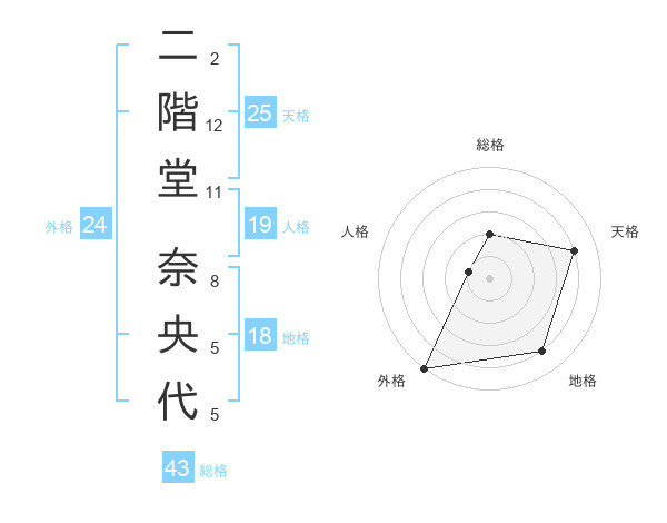 二階堂 奈央代さんの外格は24画の5点!