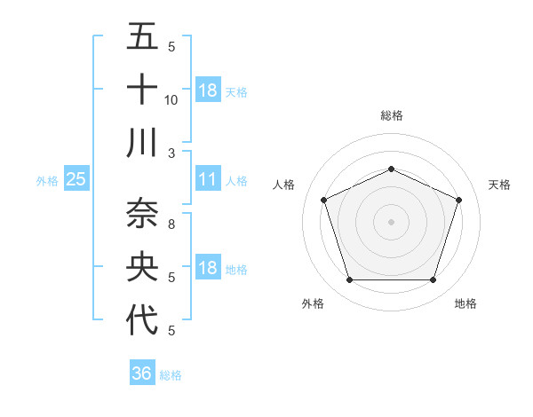 五十川 奈央代さんを姓名の画数から五運を鑑定
