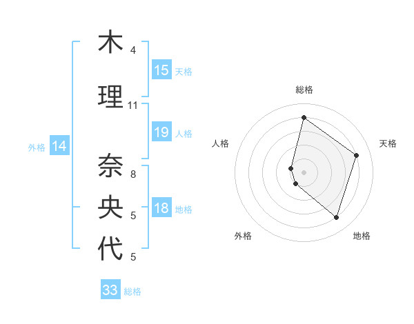 木理 奈央代さんを姓名の画数から五運を鑑定